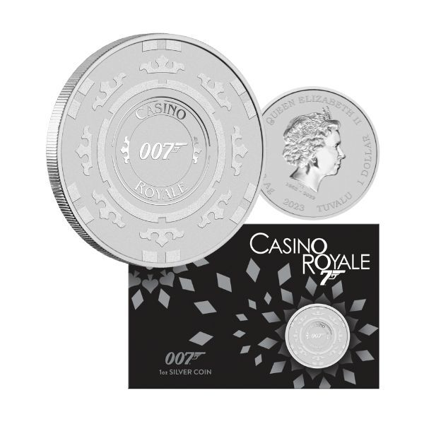 2023 James Bond Casino Royale Casino Chip 1oz Silver Coin in Card