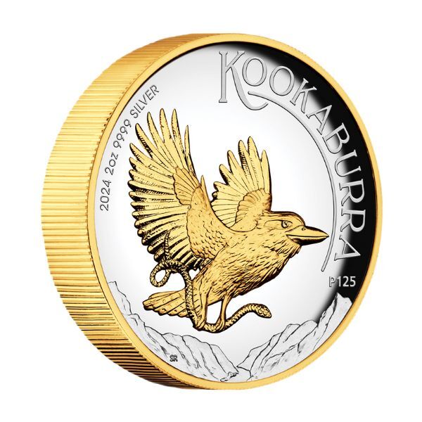 The coin’s design depicts a representation of a kookaburra in flight over a gorge with a snake in its talons. The bird, snake and outer ring of the coin are gilded in 24-carat gold. The reverse also includes the inscription ‘KOOKABURRA’, a ‘P125’ mintmark signifying The Perth Mint’s 125th anniversary, and the coin’s weight, purity and 2024 year-date.