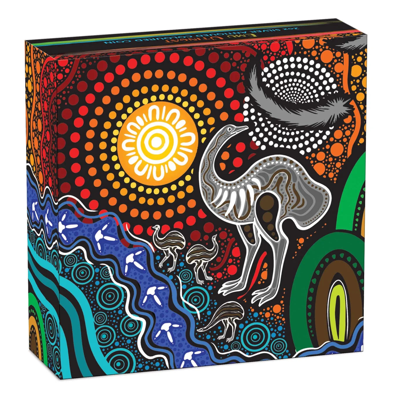 Crafted from 99.99% pure silver, we’re thrilled to present this incredible 2oz antiqued coloured coin portraying an original painting of an 'Utingat' (emu) designed by Aboriginal artist, Chern’ee Sutton.